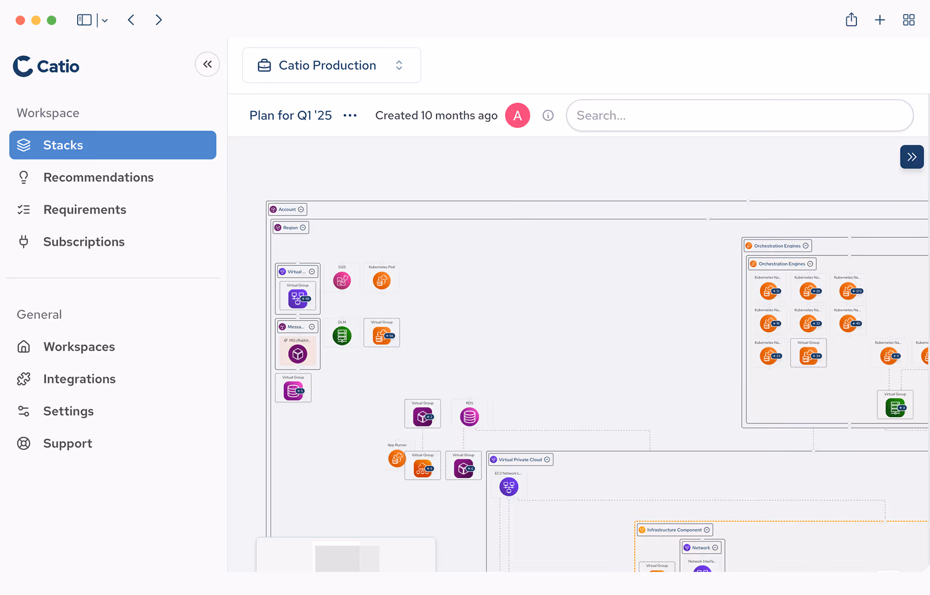 Users can easily select their environments and integrate various data sources into Catio during the onboarding process. This guided integration enables a comprehensive view of your cloud-native architecture, allowing Catio to discover most of your architecture, particularly large blocks, through just a few integrations. Catio also provides you with an increasingly precise recommendations set with each additional data source.