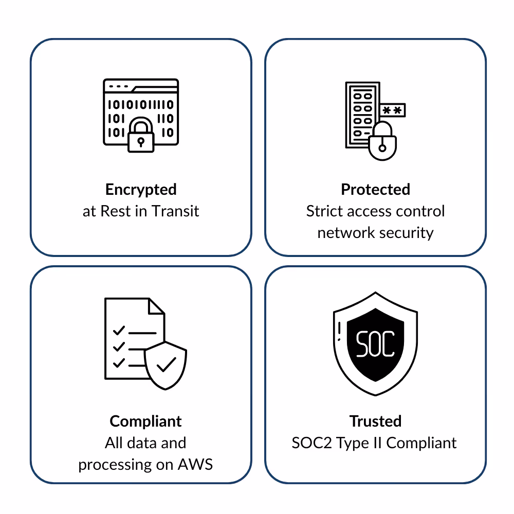 We embed security at every layer of our platform architecture, from infrastructure to AI models, ensuring data integrity, privacy, and compliance.